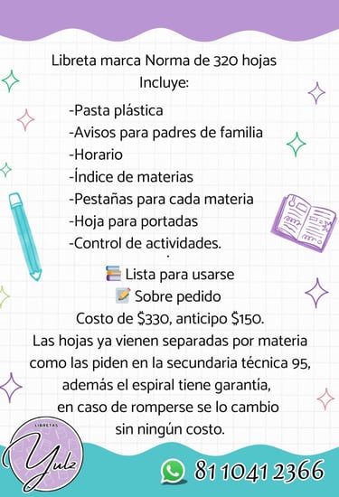 Creamos libretas personalizadas para secundaria y preparatorias, adaptadas a tus necesidades y estilo.